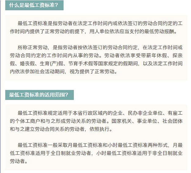調(diào)整后我省月最低工資標(biāo)準(zhǔn)(適用于全日制勞動(dòng)者)分三個(gè)檔,分別為1930元/月、1740元/月、1550元/月;小時(shí)最低工資標(biāo)準(zhǔn)(適用于非全日制勞動(dòng)者)也相應(yīng)設(shè)三個(gè)檔,分別為19元、17元、15元。