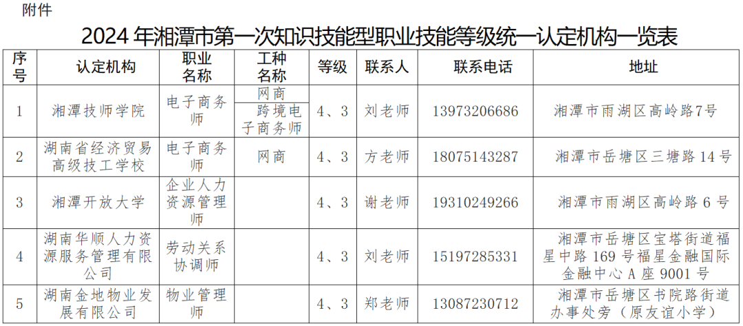 為進(jìn)一步提高全省技能人才評(píng)價(jià)質(zhì)量,提升職業(yè)技能等級(jí)證書含金量,省人社廳定于4月實(shí)施2024年第一次知識(shí)技能型職業(yè)技能等級(jí)統(tǒng)一認(rèn)定,湘潭共有5家職業(yè)技能等級(jí)統(tǒng)一認(rèn)定機(jī)構(gòu),可方便和服務(wù)廣大勞動(dòng)者就地就近參與認(rèn)定。
